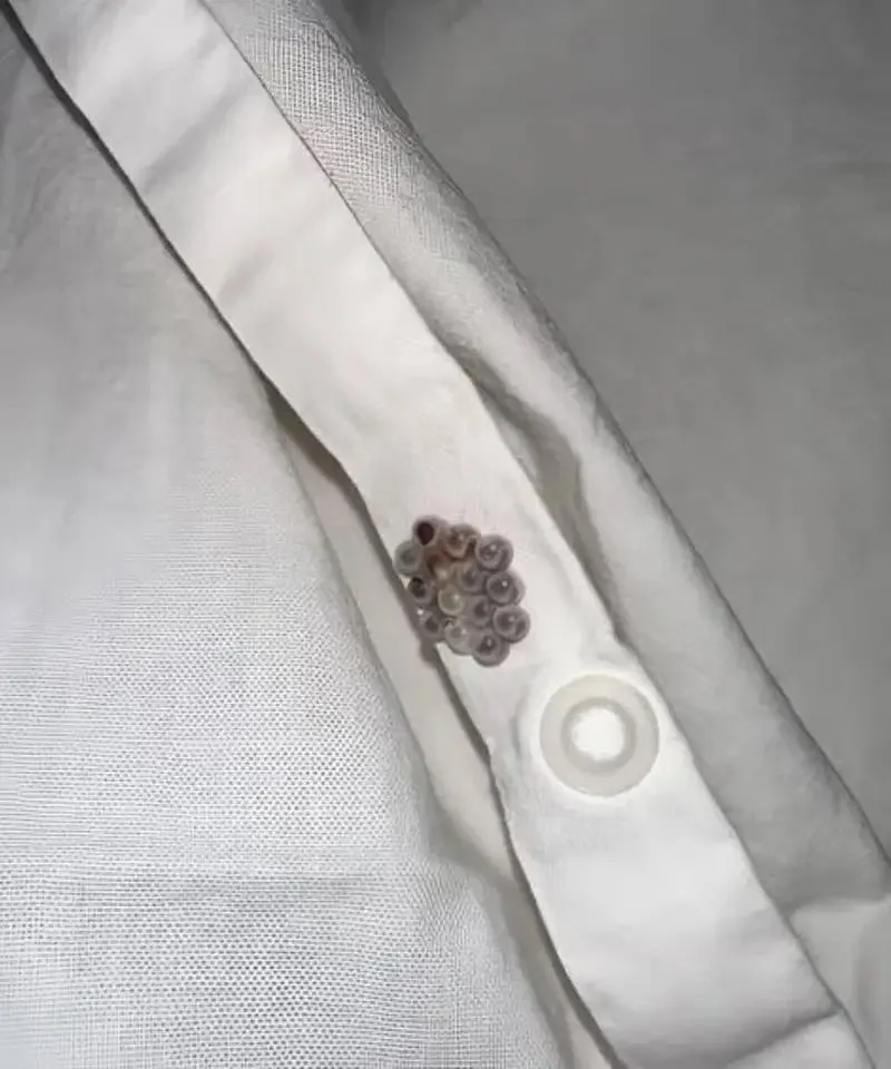 As I lay in bed, slowly blinking myself awake, something odd caught my eye. There, just beside me on the sheet, were a few tiny round objects—perfectly shaped, almost too perfect. They were small, neatly arranged, and looked almost deliberate in how they sat there.