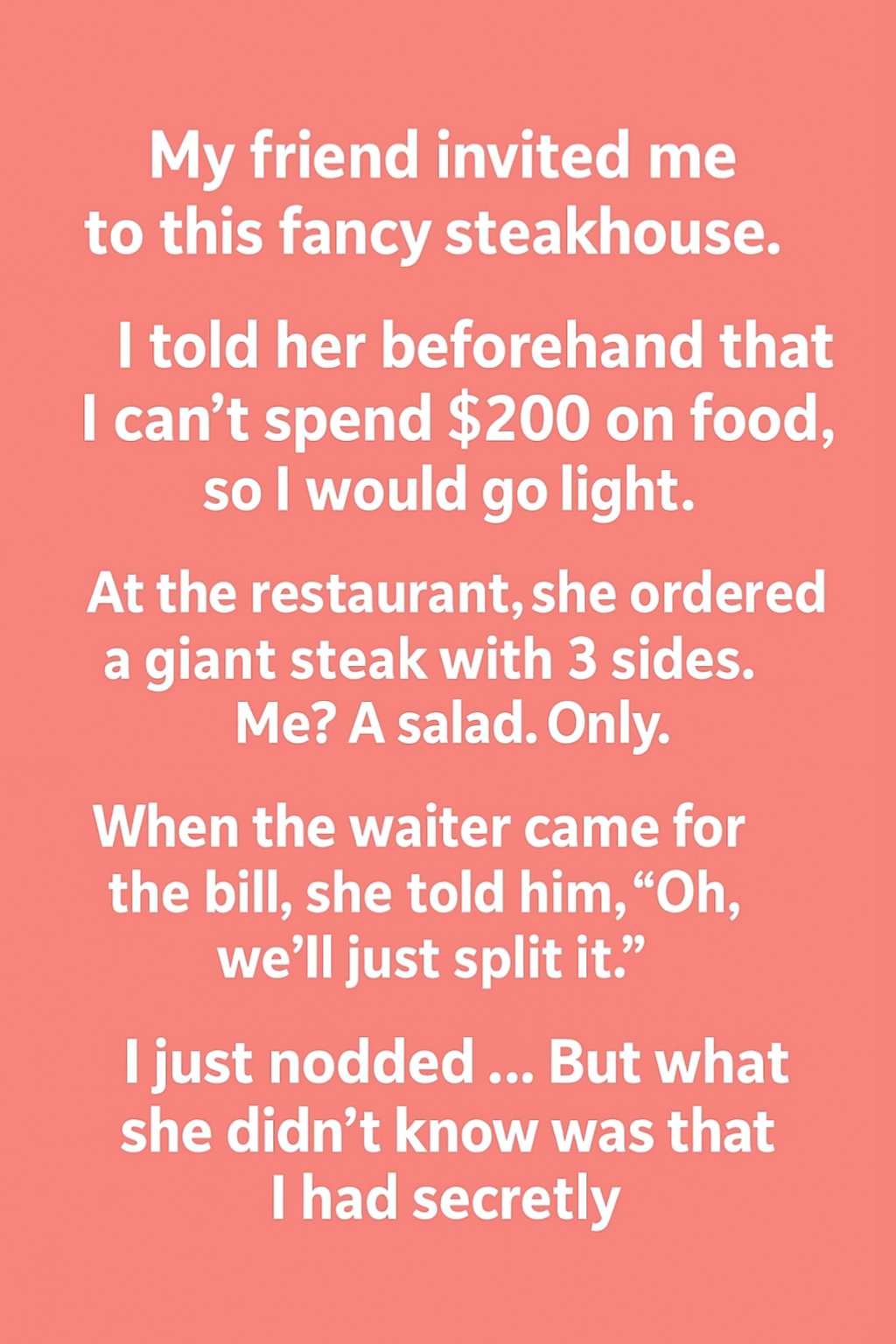 When my friend invited me to a fancy steakhouse, I was thrilled to catch up but anxious about the cost.