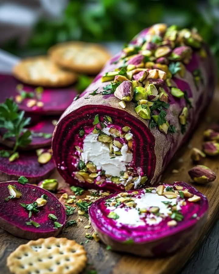 A vibrant, elegant appetizer featuring creamy goat cheese, earthy roasted beets, and crunchy pistachios—perfect for entertaining or a gourmet snack!